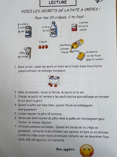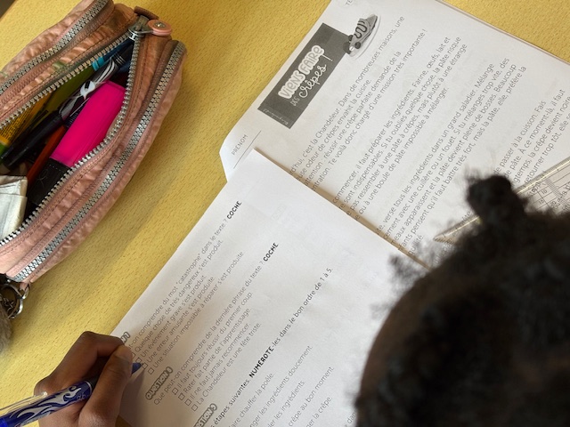 Mais la journée ne s’est pas arrêtée aux douceurs sucrées. Les apprentissages en français ont également occupé une belle place. Lecture, poésie, reconstitution de textes : les élèves ont travaillé avec sérieux et enthousiasme. Leur discipline et leur motivation ont permis de mener ces activités dans une ambiance studieuse et agréable.