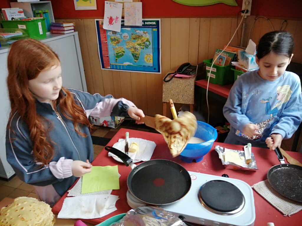 Comme le dit le dicton, « À la Chandeleur, l’hiver se meurt ou prend vigueur », mais ce n’est pas le seul à avoir animé les esprits ce jour-là ! Certains enfants ont tenté leur chance en faisant sauter leur crêpe tout en serrant une pièce de 2 € dans la main ou dans la poche. Résultat : quelques vols réussis et, paraît-il, prospérité garantie pour l’année 2026 ! Ils ont d’ailleurs promis de partager leur fortune avec vous, chers parents !